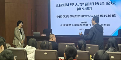 2025年10月22日下午,我院举办了“晋阳法治论坛”第54期活动。本次论坛主题为“中国优秀传统法律文化及其现代价值”,特邀北京师范大学bv伟德国际1946教授、博士生导师柴荣作为主讲嘉宾。本次活动由张亚飞副院长主持,bv伟德国际1946部分教师和研究生参与。